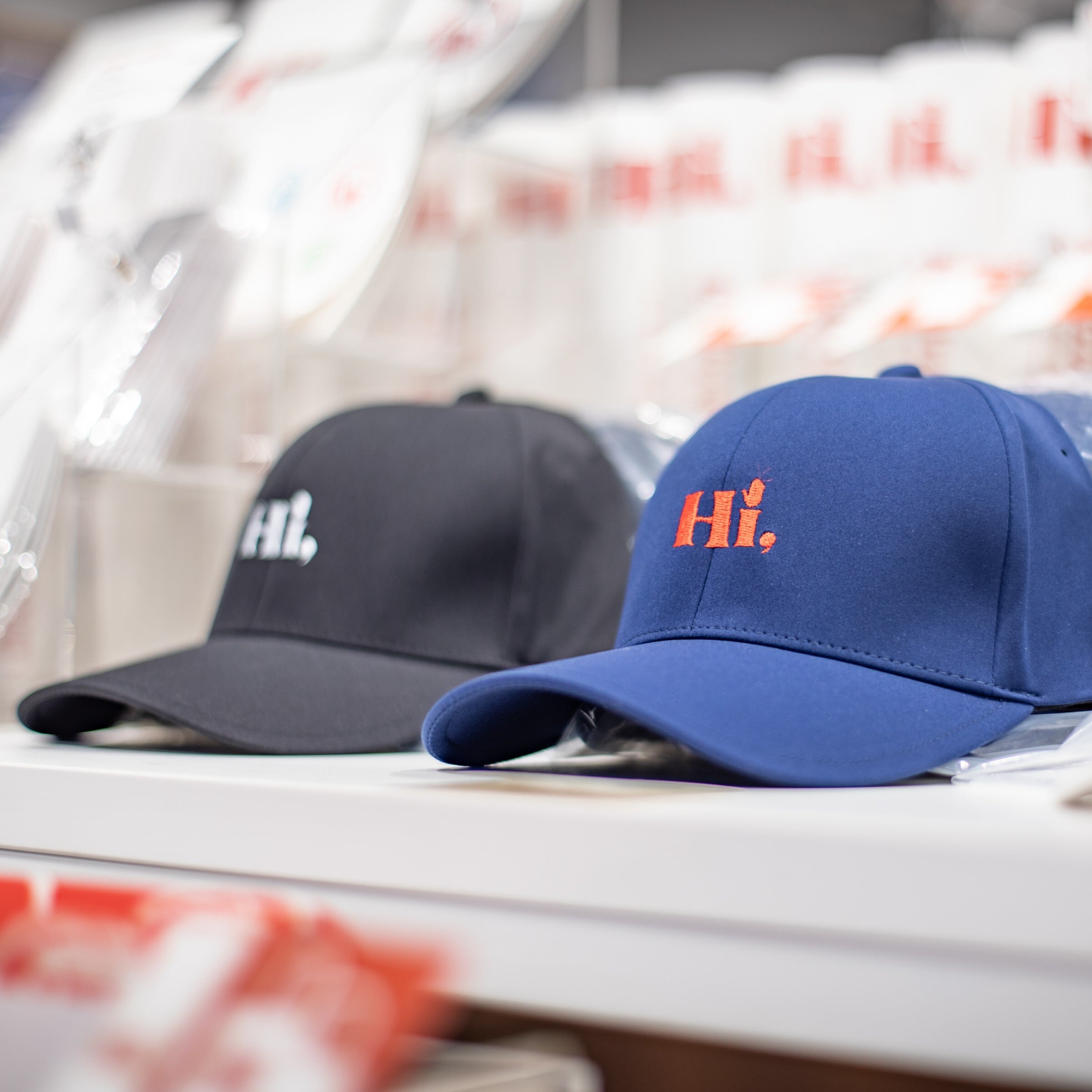 フロントのブランドのアイコン「Hi,」マークとバックには「Hi Hiroshima」の刺繍がポイント。
