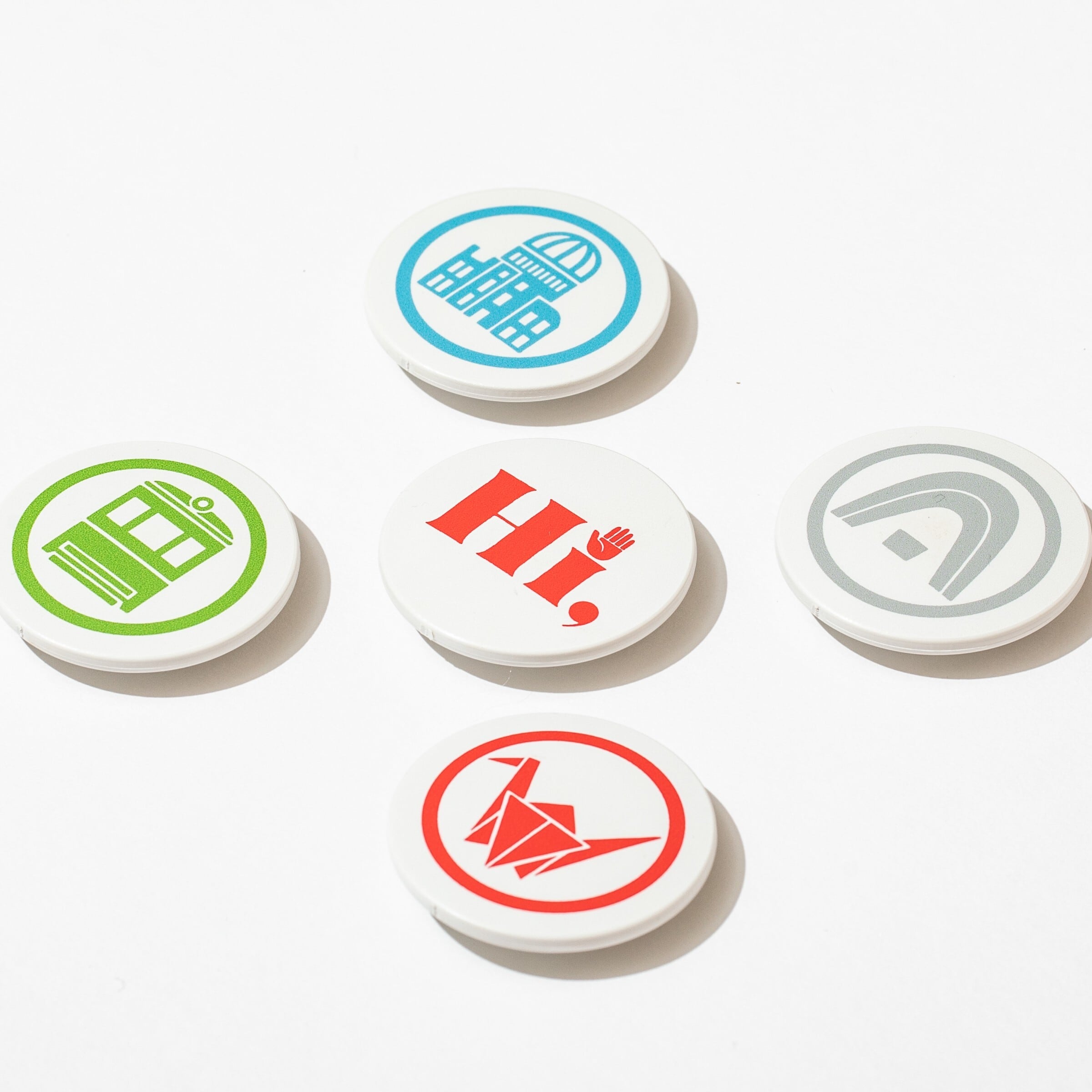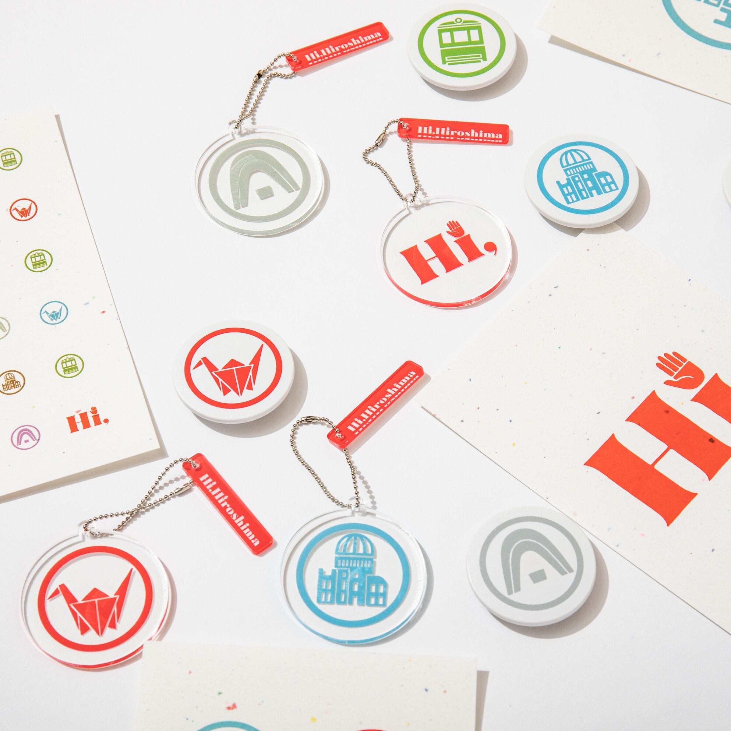 広島のシンボル「折り鶴」「原爆ドーム」「慰霊碑」「電車」をアイコンにデザインされています。
