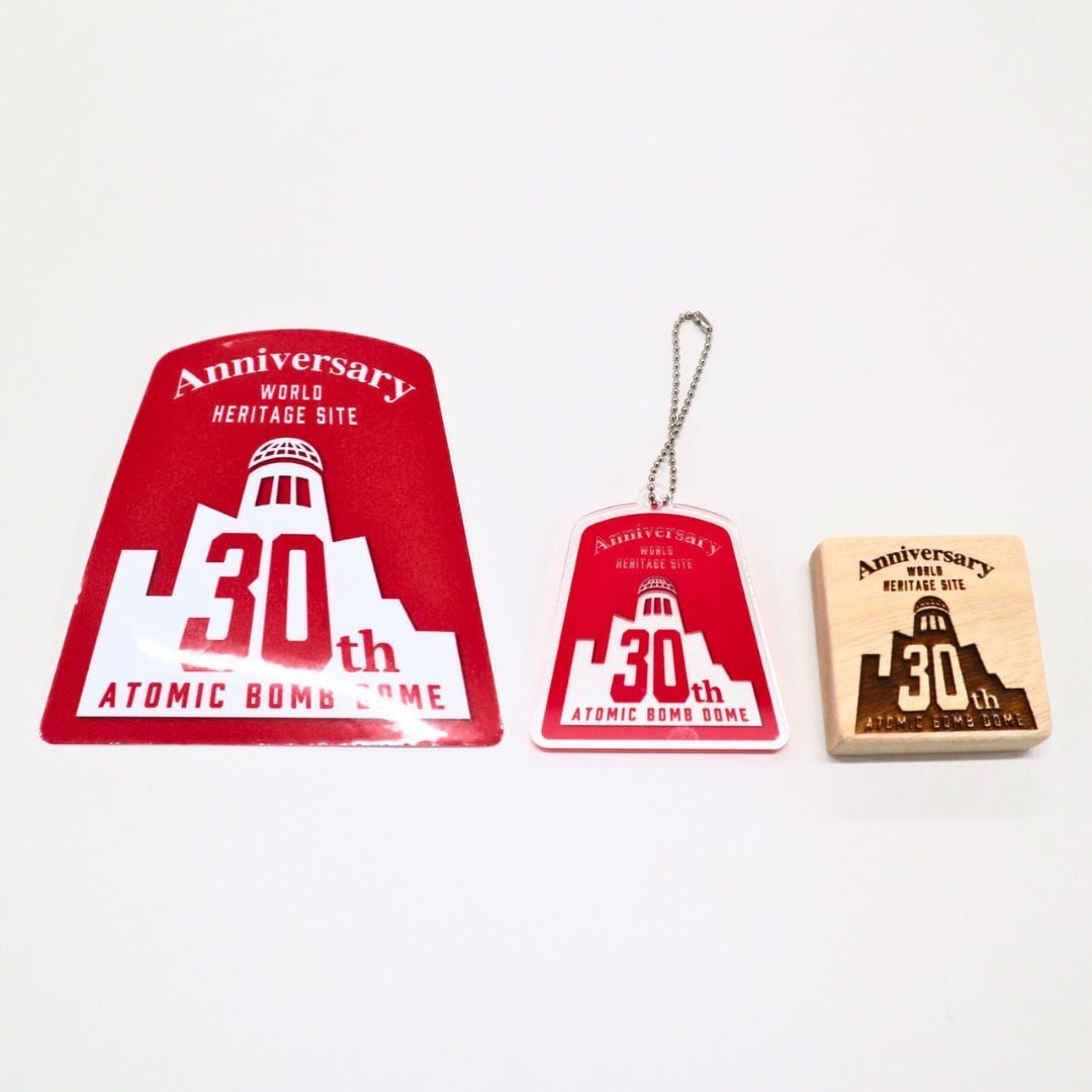 原爆ドームと30周年ロゴの2つがセットになっております。単品より少しお求めやすい価格になっております。